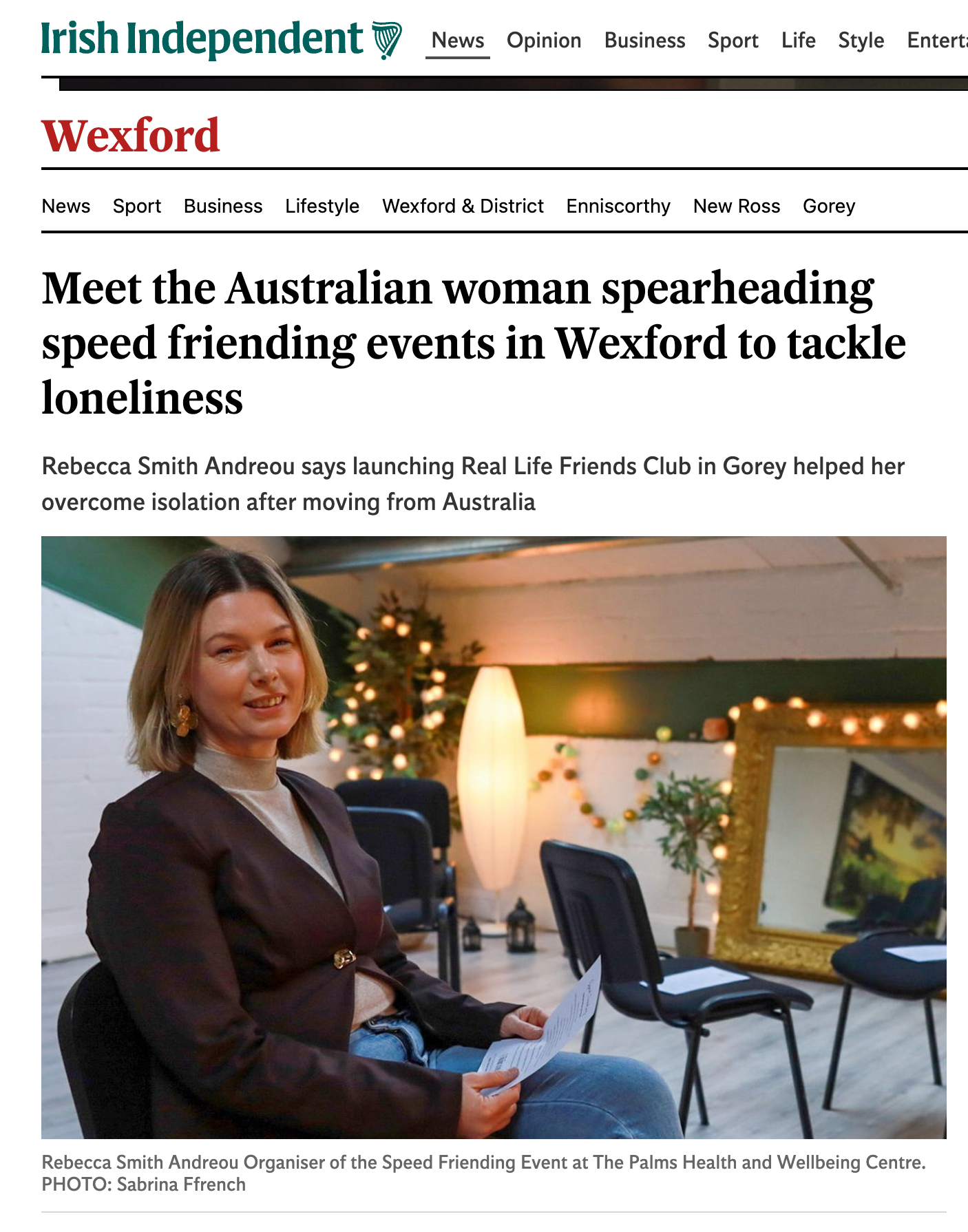"I went to Rebecca’s speed friending event in Gorey a couple of weeks ago and honestly loved it. There was a great crowd of women and it really opened my eyes to how many people are at a bit of a loose end socially and don’t always know how to build friendships at this stage of life. The 5–7 minute chats were fun and easy, but the highlight was the group conversation at the end, great energy and real connection. Some of the girls even went for a drink after, and the following week I met two girls for coffee. Even without expecting a close bond, it’s just lovely getting to know new people. Rebecca’s events genuinely add value to society by filling a growing social gap, and I think it’s a sustainable business with huge potential."